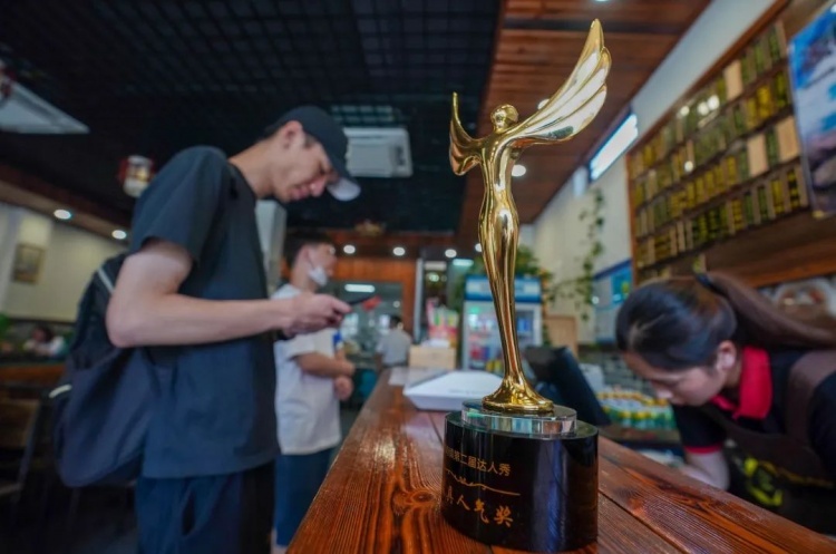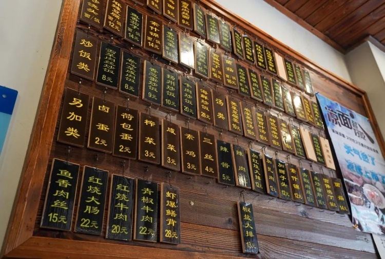 观察君去的这家是日月伴的总店,也是开得最久的一家,门面在一条小河边,周边都是居民区,街上其余也是一家家小饭馆,生活气息很浓,十一点,店里已经差不多坐满了,收银台还排着队。