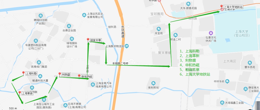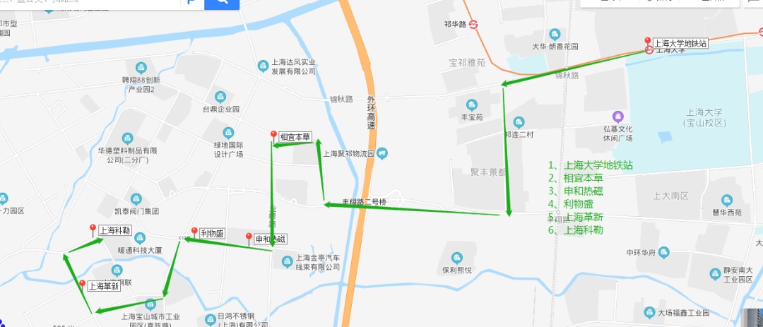 上海大学地铁站----相宜本草---申和热磁---利物盛---上海革新----上海科勒