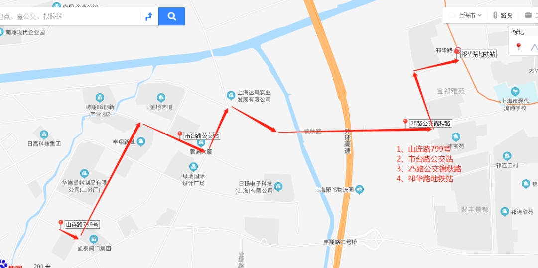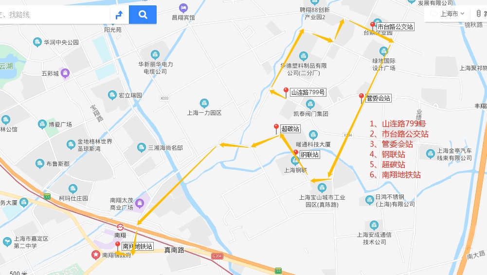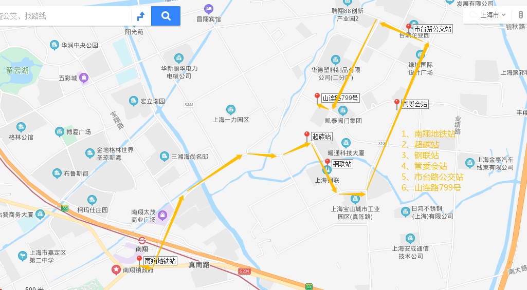 南翔地铁站----超碳站---钢联站---管委会站---市台路公交站---山连路799号