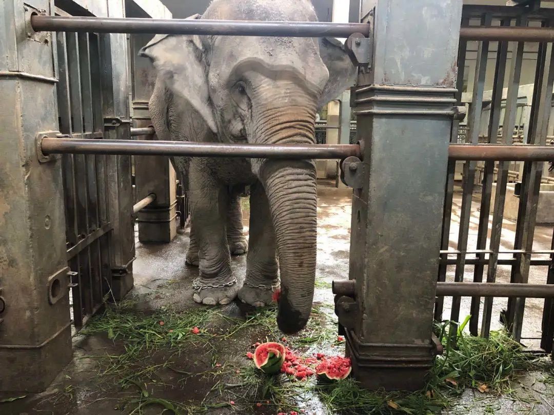 亚洲象也爱吃西瓜。大块头有大胃口,每头象的伙食标准是每顿饭一只大西瓜。有的大象会把西瓜踩成小块再送进嘴里,有的则将西瓜“一踩为二”,半只半只地吃。从吃瓜的方式就能看出每头象的独特性格哦。