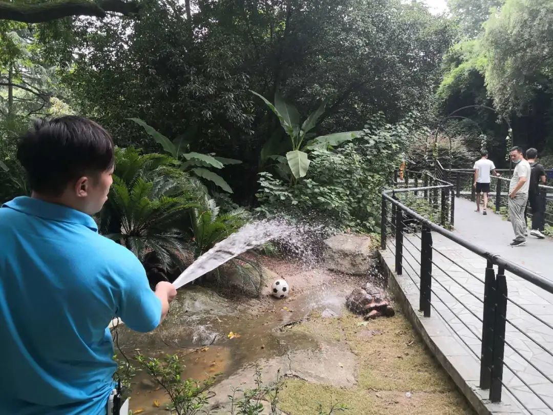 两爬馆中的两栖爬行动物们属于冷血动物,不像哺乳动物有厚厚的皮毛,面对高温它们还是比较活跃的,虽然两爬动物很享受阳光,饲养员们还是采取了一定的防暑降温措施,让两爬动物们也能舒适地度过这个夏天。