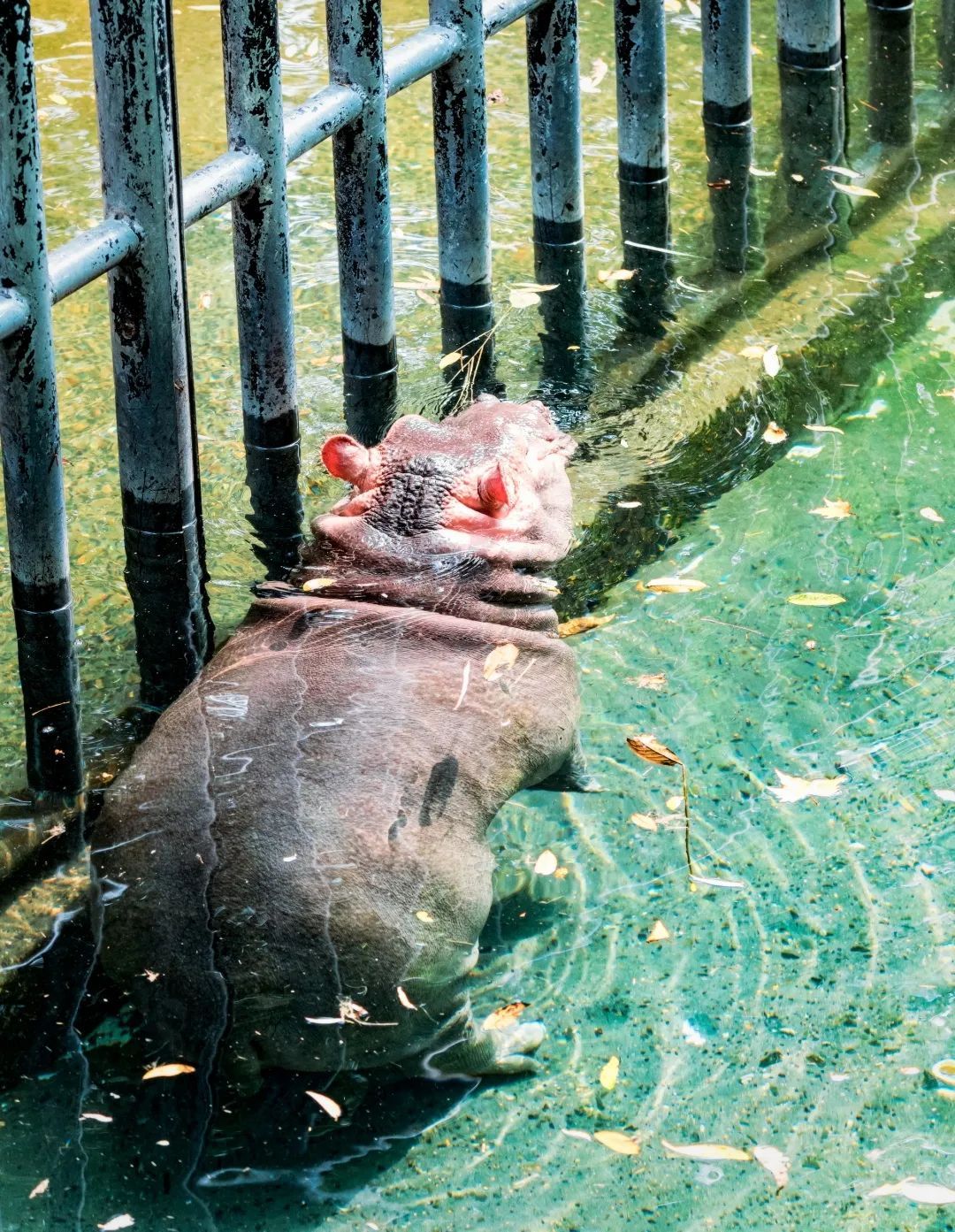 河马趴在水里,静静地看着烈日下的游客,淡定且优雅。只有在进食的时候上岸,吃饱以后,又继续回到了水中。