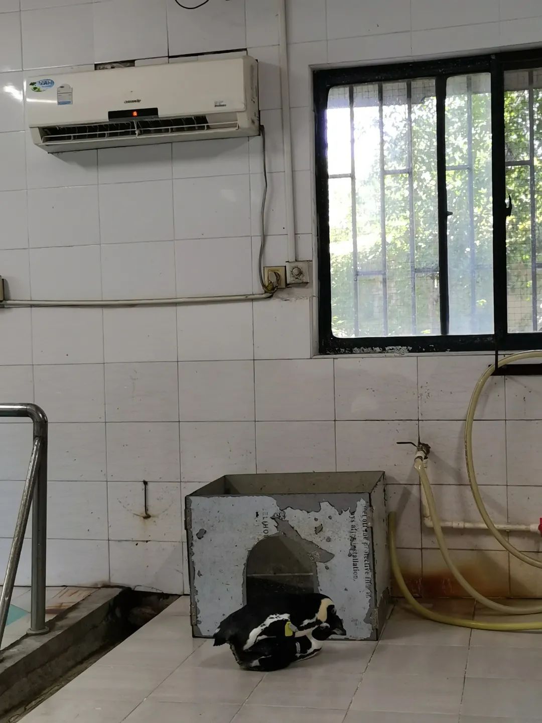 来自南非的斑嘴环企鹅,故乡最高气温26℃左右,上海的三伏天着实让羽毛较厚的企鹅们吃不消。除了在室内吹空调之外,它们还常泡在室外游泳池里消暑。