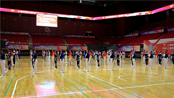 昨天(8月8日)下午,2020年上海市第三届市民运动会——990上海市第九套广播体操大赛,在嘉定体育馆举行。在疫情常态化防控的前提下,虽然比赛规模有所缩小,但仍然吸引了16支队伍194名选手现场竞技,最终8支队伍入围决赛。