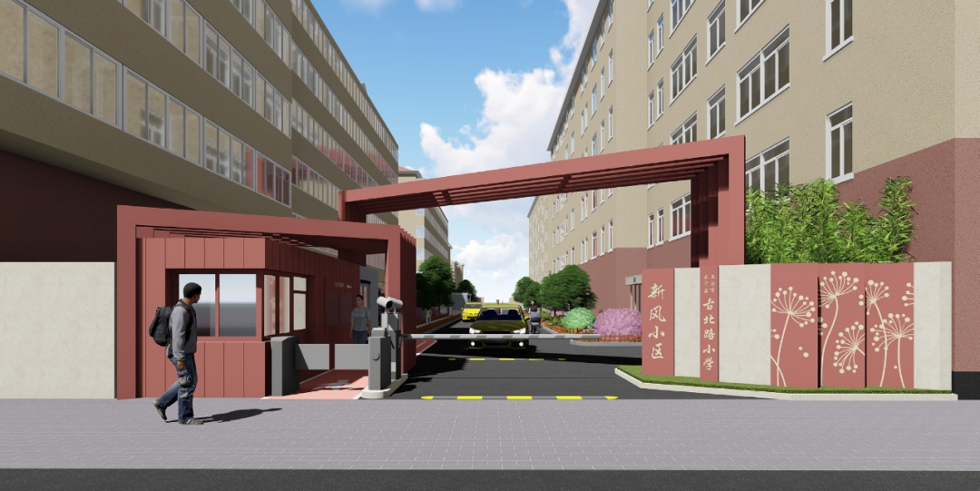 本次改造将对门卫、入口铭牌及围墙进行翻新设计,并增设智能车辆识别系统、人行闸机,实现人车分流,避免出现进出小区门口时人车混行现象。