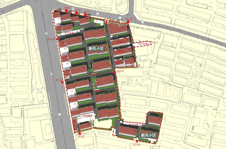 北邻玉屏南路,西至古北路,是一个由24幢5-6层住宅组成的老小区。由于建成时间较早,小区内原有建筑、道路、绿化等设施皆已出现不同程度的老化现象。