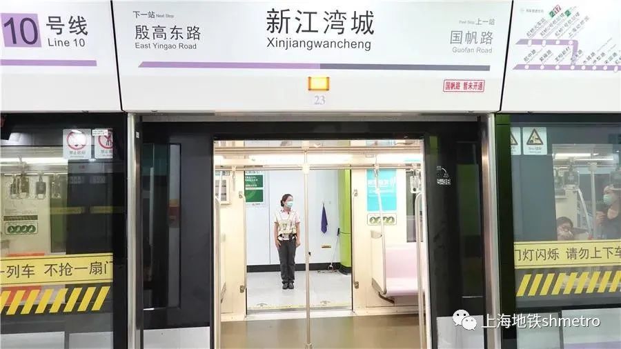 为了配合10号线二期开通前试运行演练,8月1日起10号线使用新版运行图,新江湾城站双岛式站台全部投入使用,列车到站启用双开门功能。