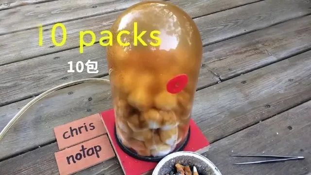 ▲当抽到第5包烟时,棉花已明显变黄;抽完30包烟后,棉花……已经看不见棉花了!