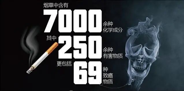 烟草燃烧会产生7000多种化学物质,其中包含有害物质250余种,更包括69种致癌物质。