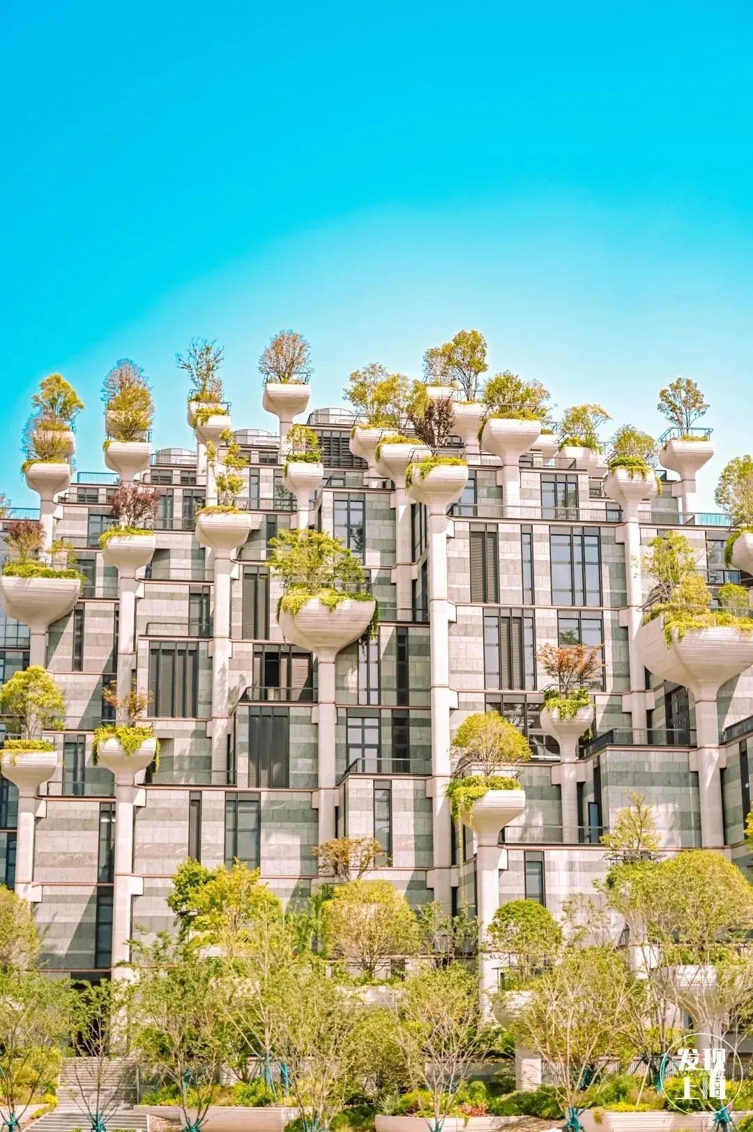 远远望去,希腊风的白色立柱上点缀着郁郁葱葱的树木,仿佛传说中的“古巴比伦空中花园”。