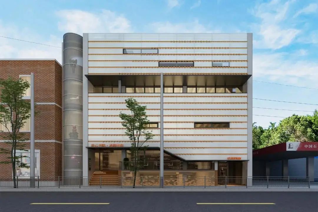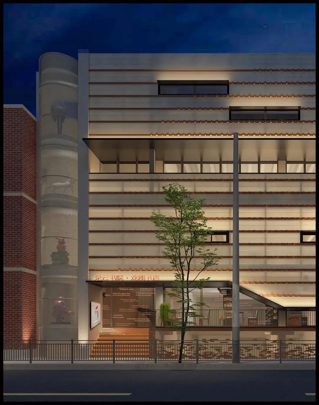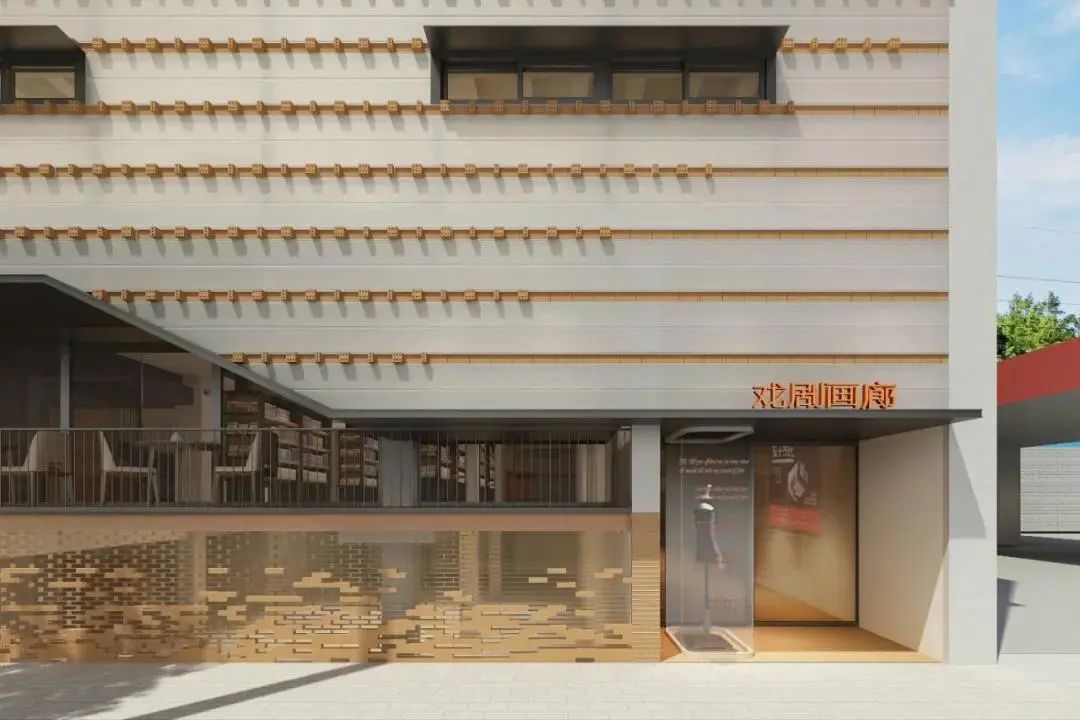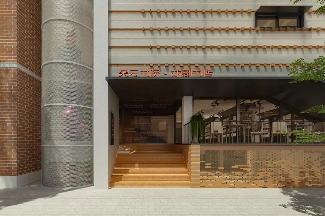 外立面用老街区的砖墙元素,书店正面的造型就像“翻开了一本戏剧之书,如同揭开一场戏剧的帷幕”,被称为“书之面具”。