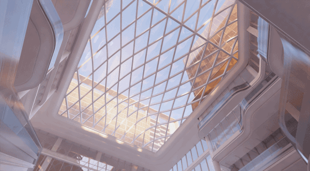 商场非常让人惊喜的是顶部可移动的穹顶!不同时间段随光线移动也会幻化出不同色彩,让人能时时体会到魔都天空的变幻之美。