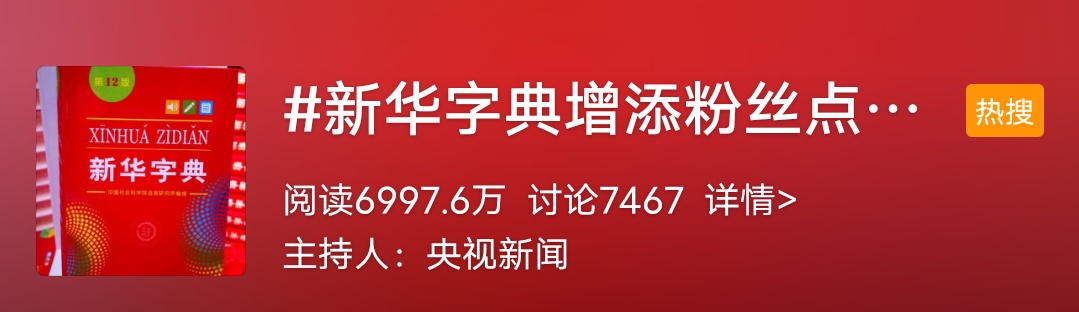 然而,《新华字典》收录“点赞”“卖萌”等词,引发了网友热议,相关话题#新华字典增添粉丝点赞等新词#迅速冲上微博热搜。