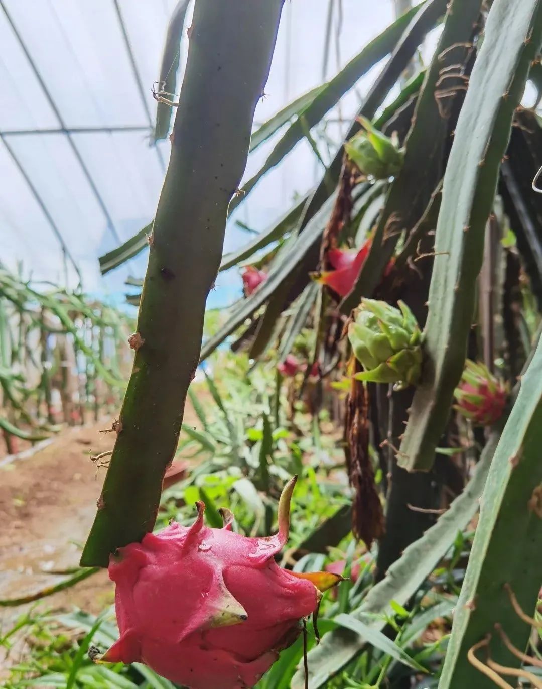 走进火龙果大棚里