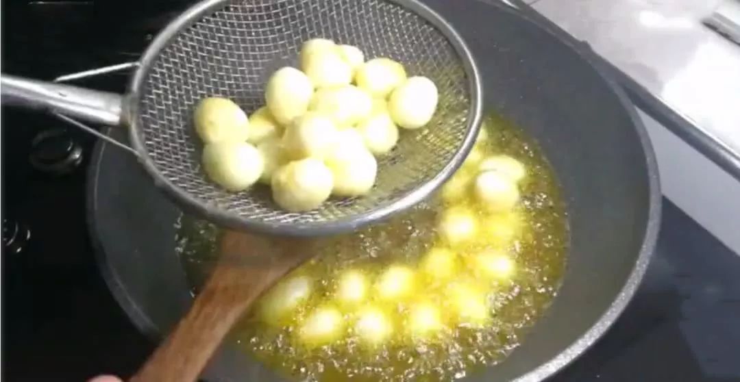 2、炸过的鹌鹑蛋,口感更劲道,控制好油温,别炸老了。