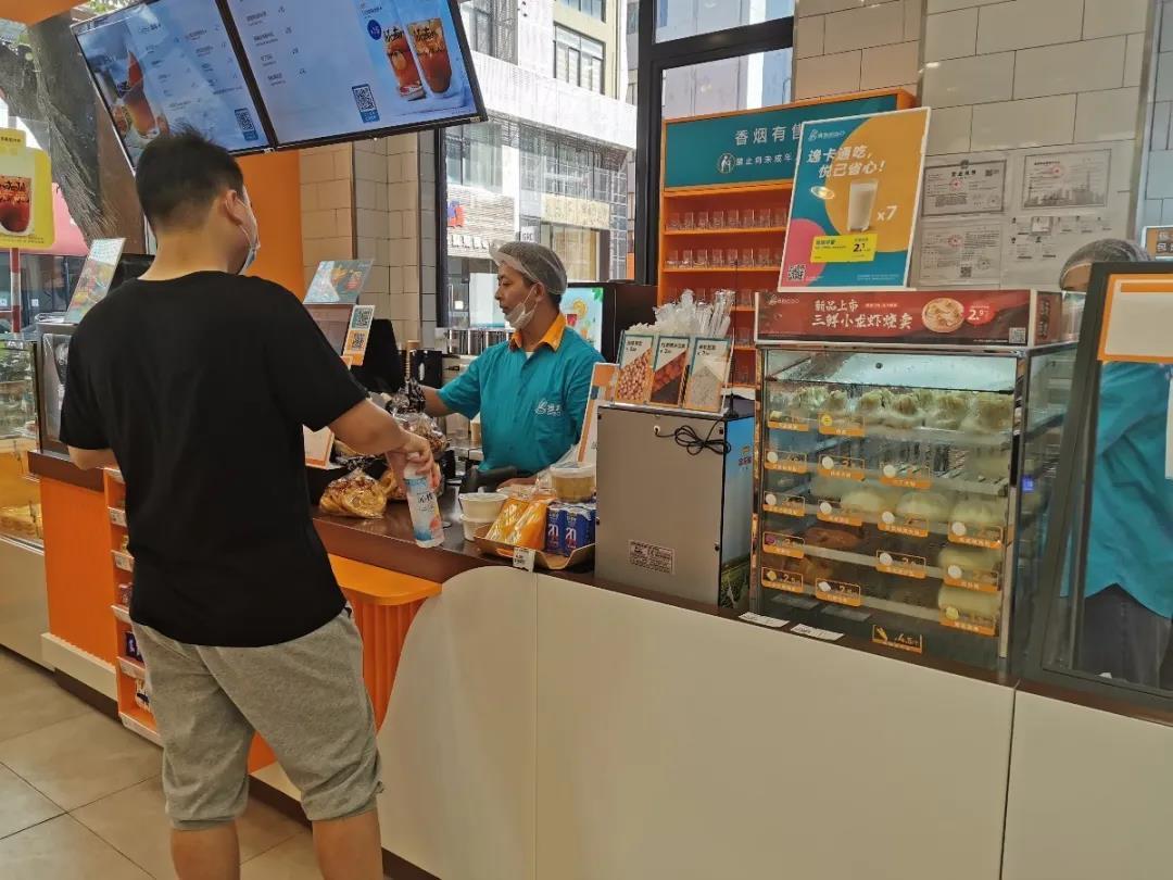 据观察,顾客最喜欢光顾的当属店里最内侧的一排冷柜,很多人直奔此处,拿上酸奶、牛奶或者各类饮品,在收银台点上两个热腾腾的包子,买单后就急冲冲去园区上班了。