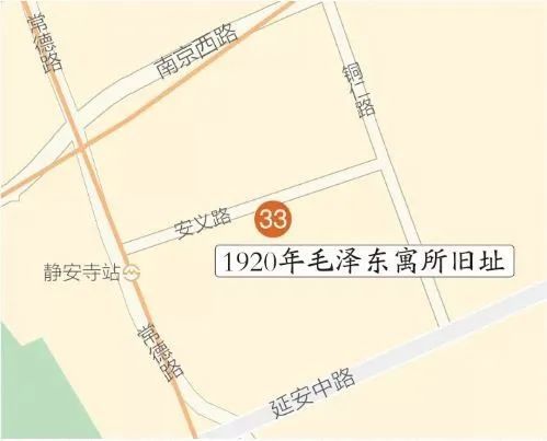 1920年毛泽东寓所旧址位于原哈同路民厚南里29号(今安义路63号)。