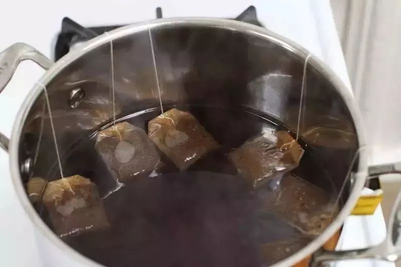 1.在锅中倒入3-4升水,煮开,放入8包红茶,烧10-15分钟,然后将茶包里残留的茶水挤到锅中。