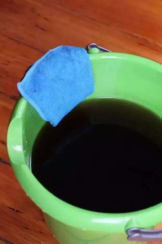 3.待桶里的茶水放凉,放入抹布,浸湿,然后沿着木地板的木质纹路擦拭。