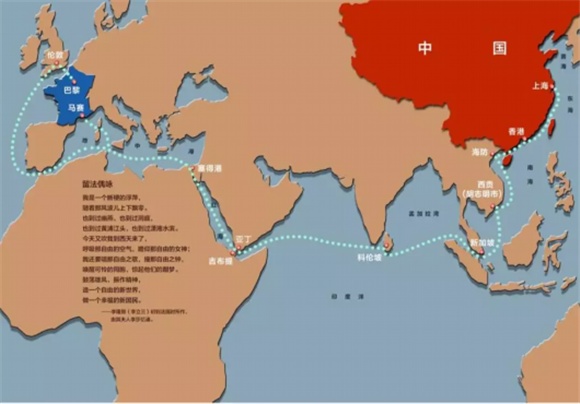 ▲上海赴法航行路线示意图(图源:留法勤工俭学运动纪念馆)