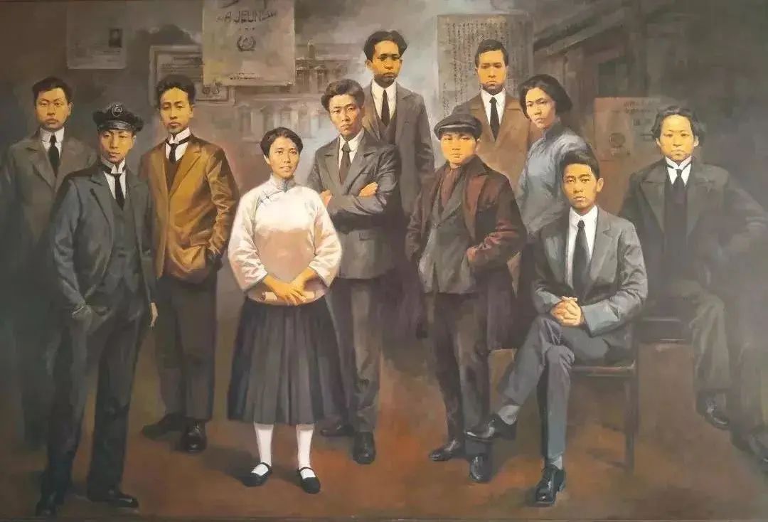 从左至右:陈毅、聂荣臻、赵世炎、向警予、蔡和森、 李维汉、邓小平、李富春、蔡畅、周恩来、王若飞 ( 图源:留法勤工俭学运动纪念馆)