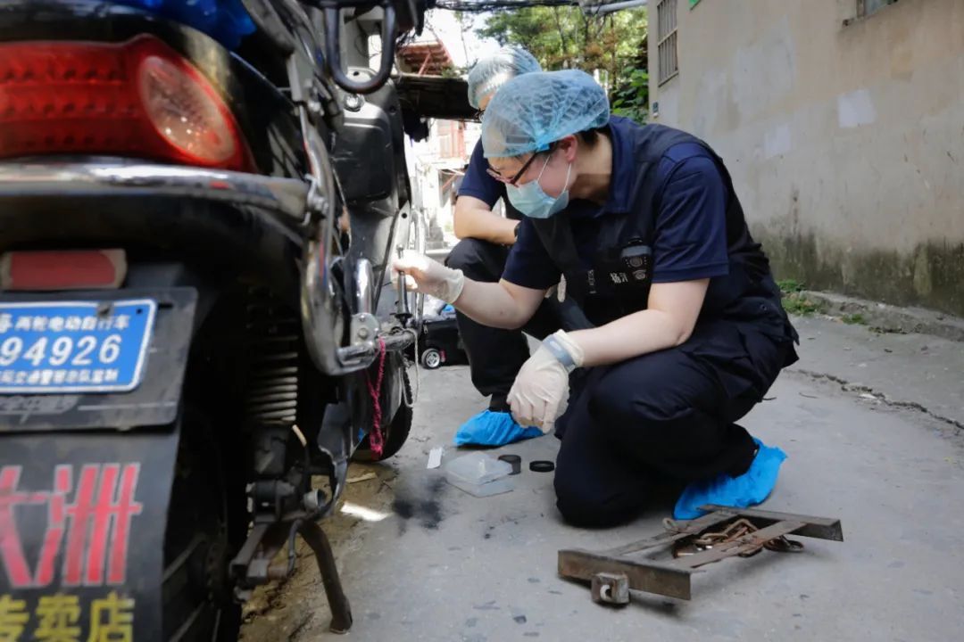 当天下午,辖区内定海街道中联村一辆非机动车电瓶被盗,吴瑕和痕检科搭档驱车前往现场取证。