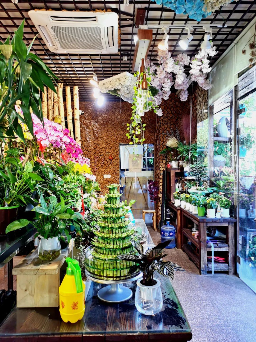 小谭花店的门口整齐地摆放着各种各样的花卉、盆栽和绿植,让这片“自然小天地”与周围的繁华形成了鲜明对比。推门走入其中,除了扑面而来的清新花香,便是满眼的花团锦簇,让这间不过十几平方米的小木屋,仿佛充满了林间的鸟语花香。
