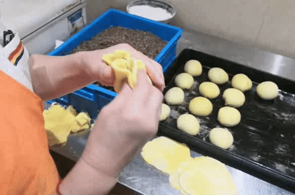 想要制作香喷喷的牛肉月饼,食材很有讲究。一心斋使用的都是黄牛腿肉,剁成肉糜后加入特定的独家配方,馅料里还要带一点汤水,才会又鲜又嫩。