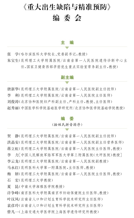 本书力求能够为从事出生缺陷一级、二级、三级预防干预工作的妇幼卫生专业人士,以及对出生缺陷防治工作有浓厚兴趣的各界人士提供重要参考。
