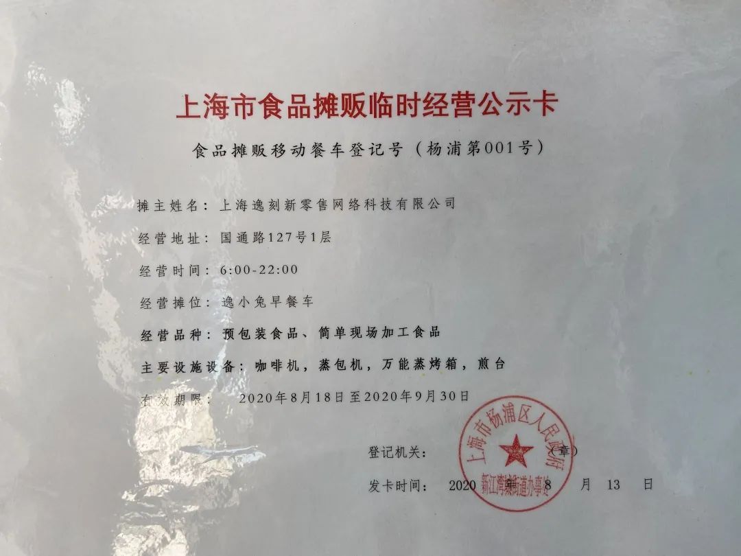 流动餐车作为新业态,必须获得《上海市食品摊贩临时经营公示卡》,方可正式上路营业。