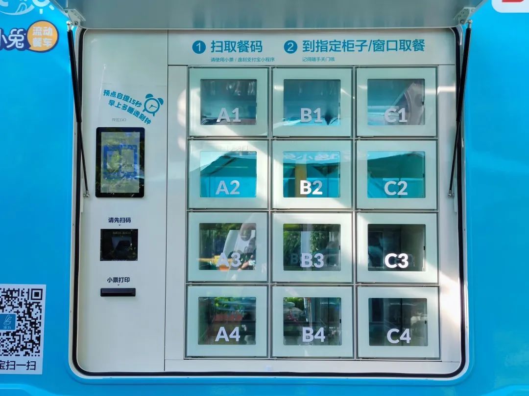 早餐工程升级,“网订柜取”的新模式让市民享受到了科技加持的便利生活,逸刻“逸小兔”流动早餐车(雏形)同样也配备了自提柜,实现了“网订柜取”。市民可以打开支付宝,在首页搜索“逸刻”,并在小程序选品下单,再选择“预点自提”生成二维码,抵达餐车后出示二维码扫码,就可以从智能保温柜中取出热腾腾的早餐了。