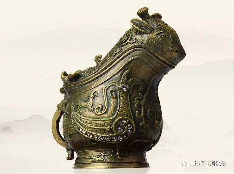 单价:青铜父乙觥珠宝盒258元,粉彩福桃纹复合丝巾420元,祝允明书法滤茶杯套装218元,青花桌旗380元