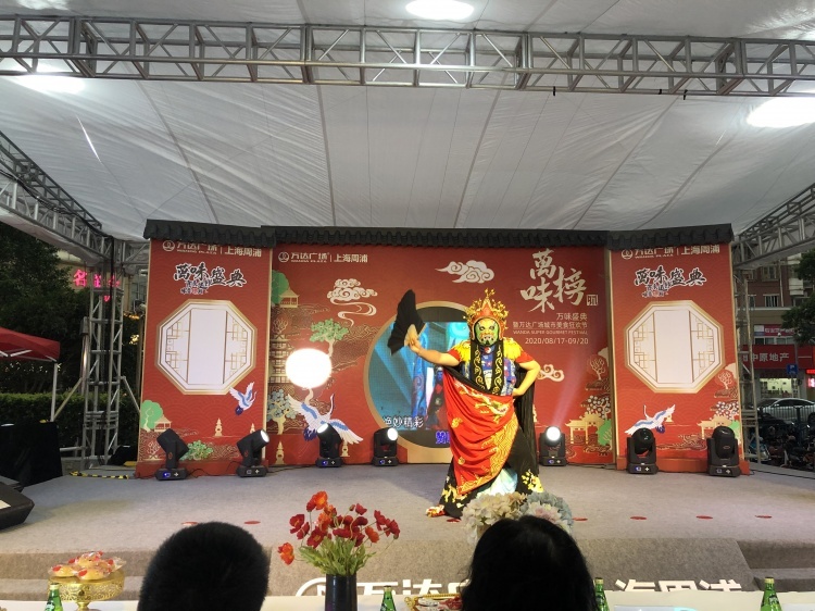 川剧变脸、民乐演奏、中国舞……8月17日晚上,连续三个精彩节目拉开了周浦万达广场“万味盛典”暨超级美食狂欢节的帷幕。周浦镇党委副书记贡柳兰表示,这样一场饕餮盛宴,不仅能重振餐饮商户信心,更能加快周浦消费市场复苏,让市民的美好生活加速回归。