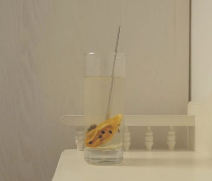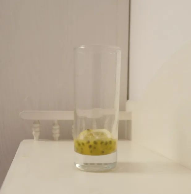 嗜酸星人可以选择直接把一只百香果的瓤+汁水与一片柠檬放入杯子,加饮用水或苏打水搅匀即可。