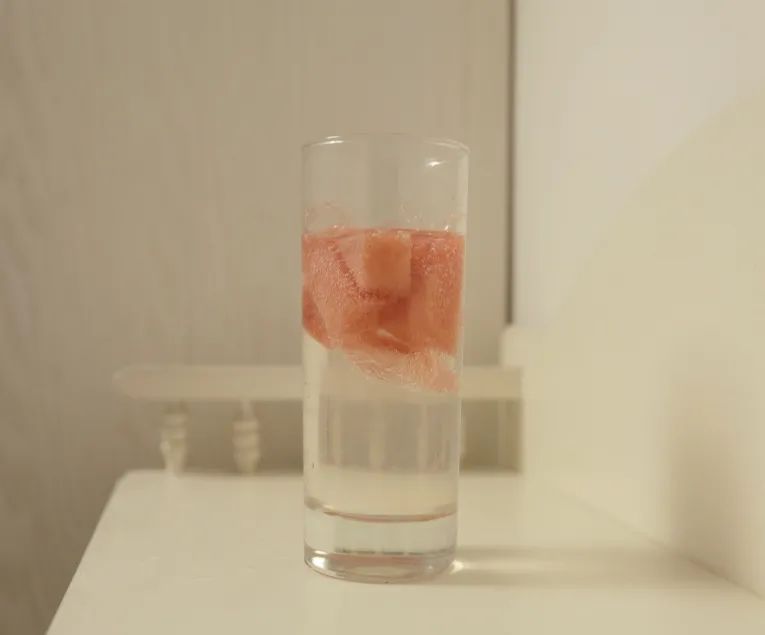 取冷冻西瓜两块,加无糖苏打水浸泡片刻,西瓜的味道就跑出来啦。
