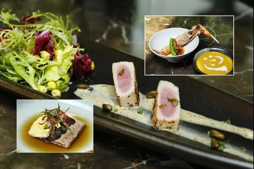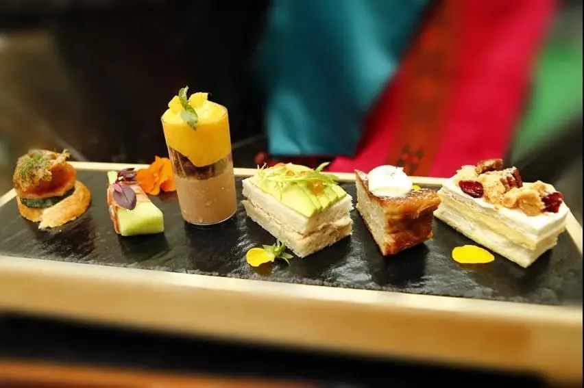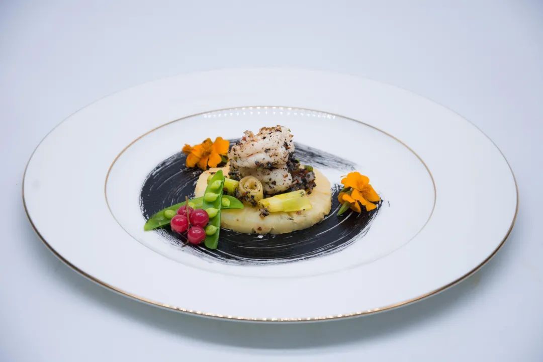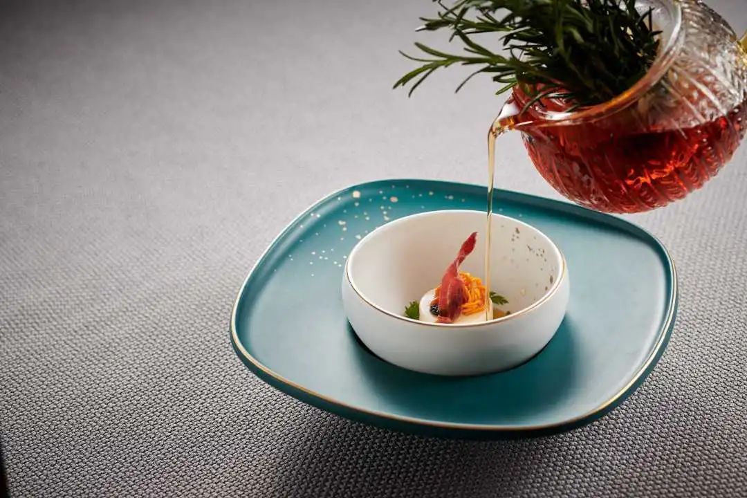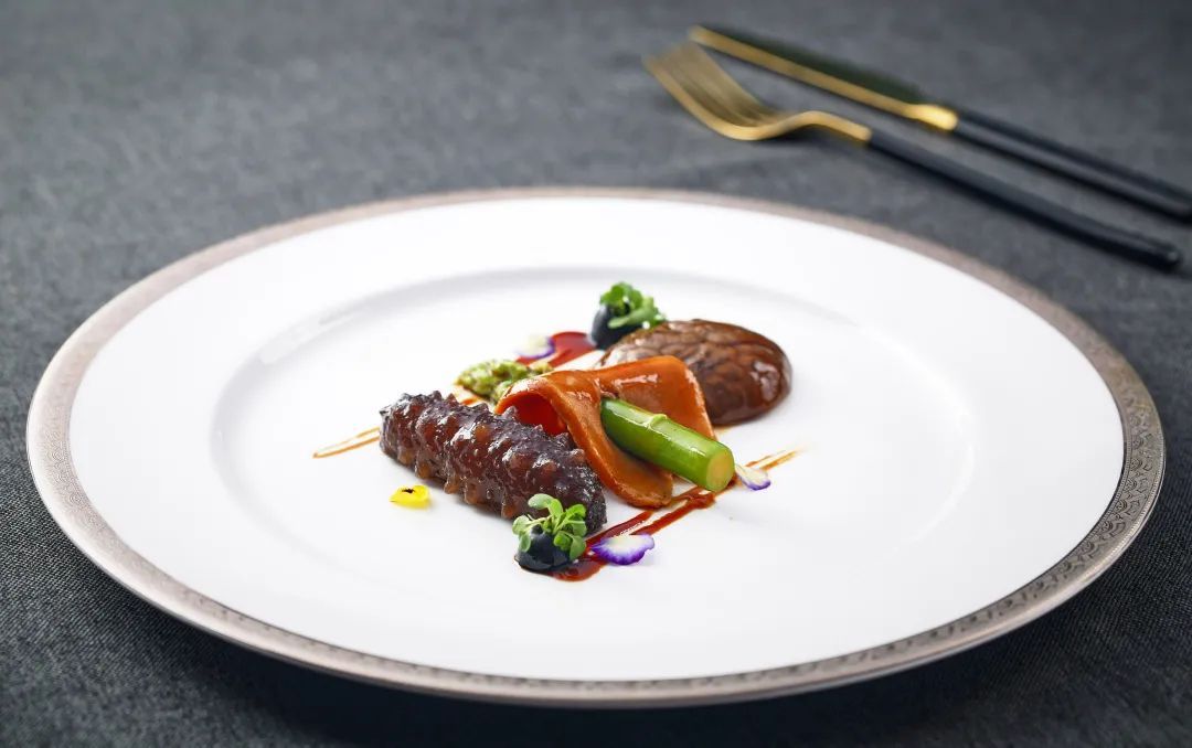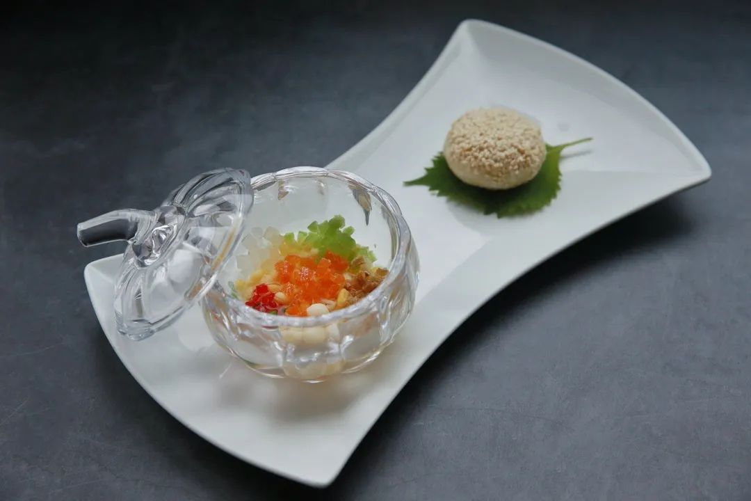“大师宴”使用国宴的规格和服务要求,精美餐具、菜肴摆盘、服务服装、台布、口布以及整体布置,展现的是一番别有风情的高端宴请,由宾馆主厨精心烹饪,呈现出每道菜肴的精髓风味和巧妙装盘设计。