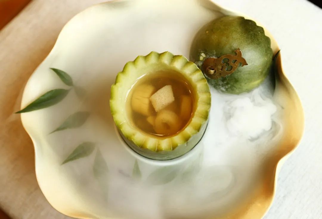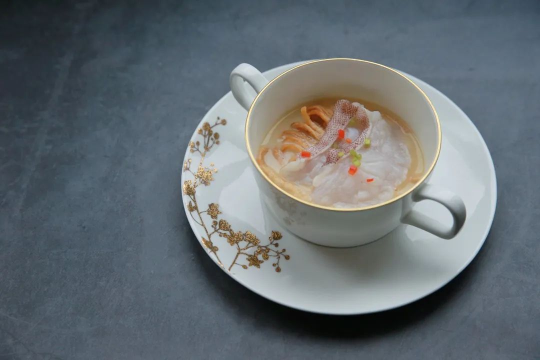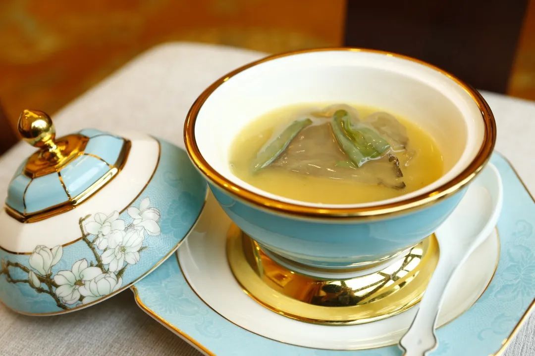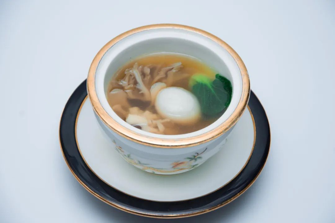 蘑菇香草茶配黑松露豆腐和虫草菇