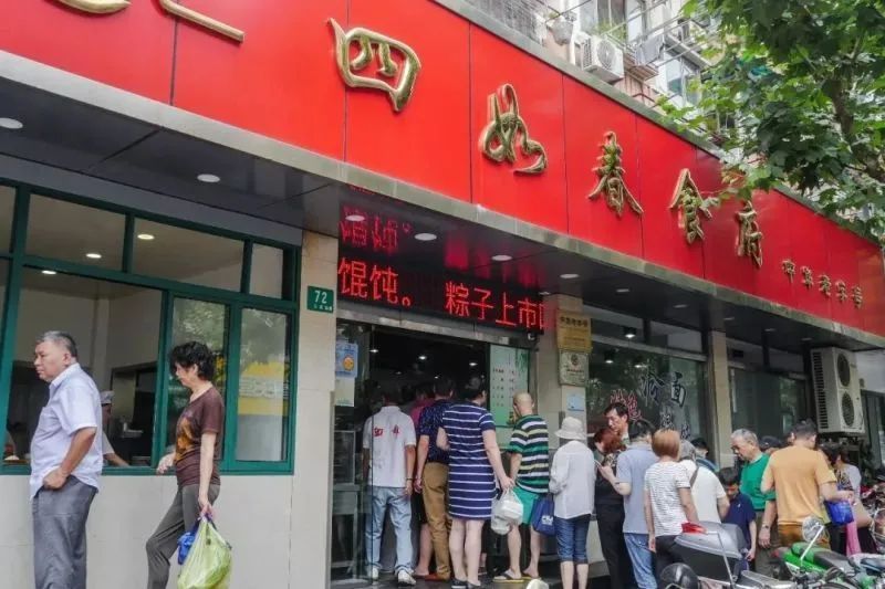 在石泉路街道,“早餐工程”的参与企业中,不乏老字号餐饮店。位于石泉路72号的四如春食府,是上海响当当的国营老字号,承载着父母老一辈人的童年记忆,老旧的招牌虽已褪去鲜艳色调,却永远怀揣着老字号的气定神闲。