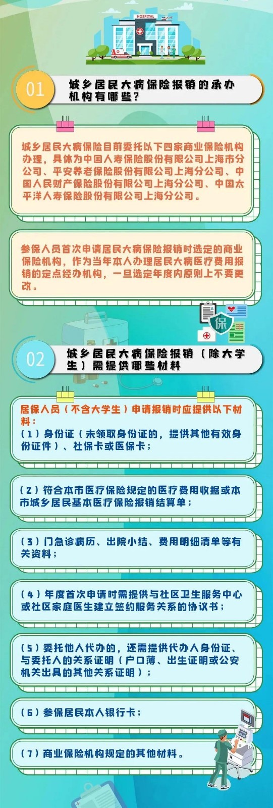 城乡居民大病医保如何办理呢?承办机构有哪些?报销需提供哪些材料?大学生参加本市城乡居民基本医疗保险后大病费用如何报销?来看市医保局的权威解答↓
