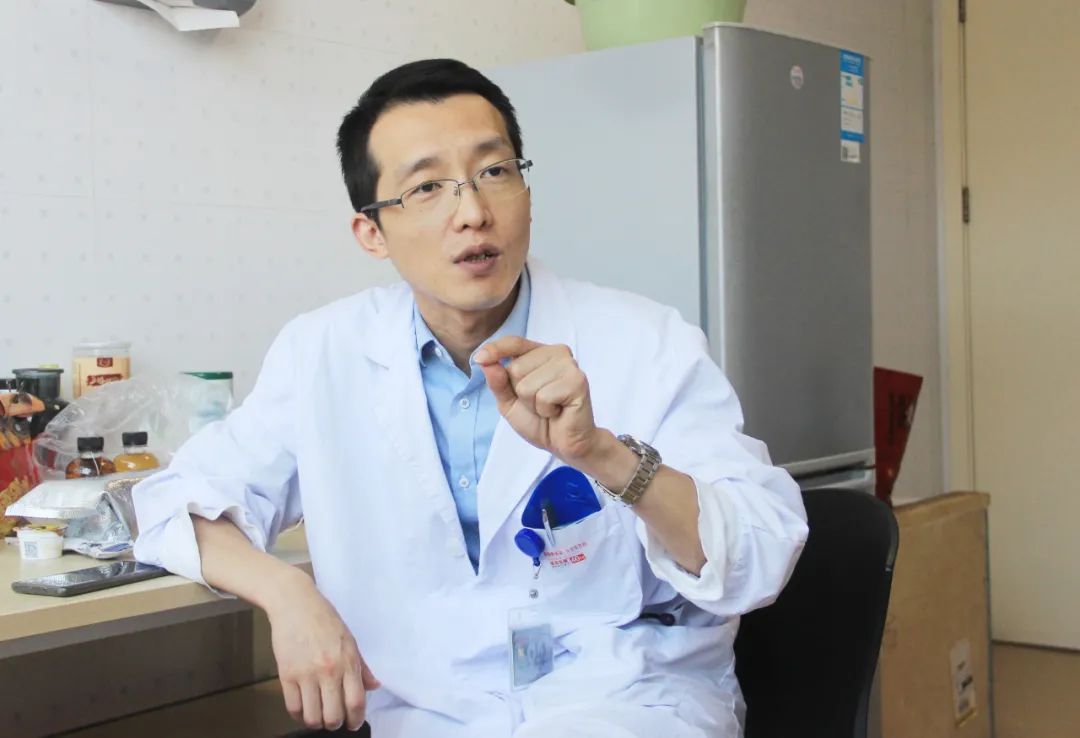 手术间隙,张鹏在9楼工作人员就餐室接受记者采访