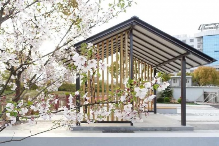 金桥镇在对永建路上一处垃圾站周边区域的改造中,将传统江南园林的意境与现代设计风格相结合,在展示金桥镇历史文脉的同时,为居民提供了一个文化内涵丰富的小公园。垃圾站也从原先的中转功能升级为一个全封闭处理的压缩站,靠近公园一侧的围墙也成为垃圾分类的宣传阵地。