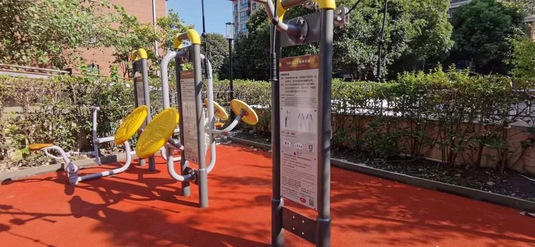 而车库入口上方的小片空地,在被改造成集中健身点后,居民有了更多更专业的健身器械,器械上都有二维码,居民只需手机一扫就有该器械如何使用的演示,十分人性化。