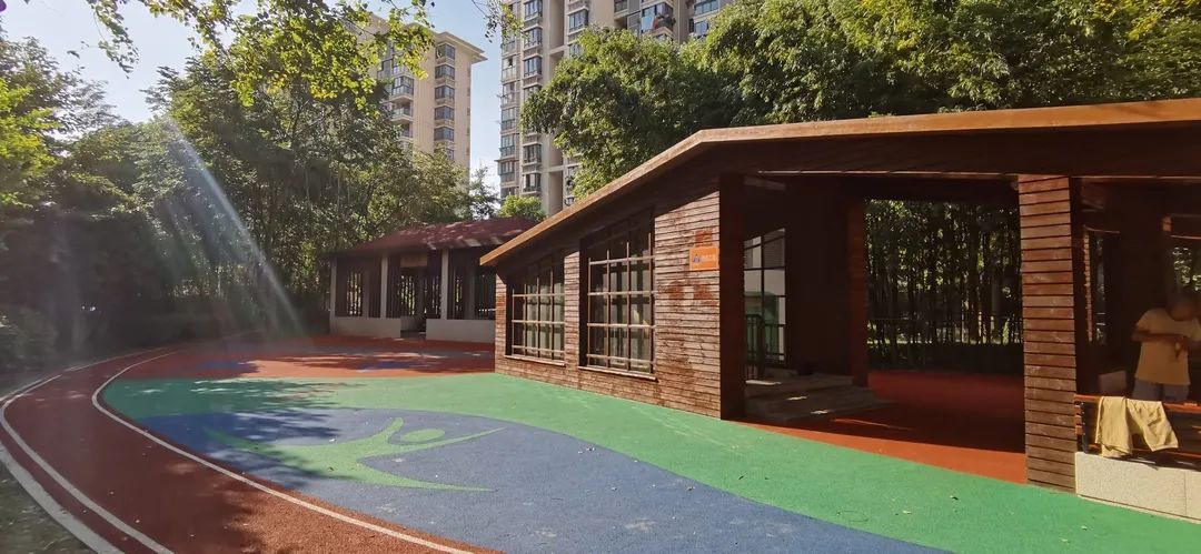 “怡然亭”外,原本的大片空地成了活动平地,老年居民可以在这里跳舞活动;百余米的健身跑道绕空地一圈,居民可以散步、小跑。