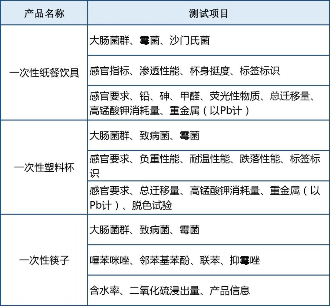 结果显示:一次性筷子产品3批次不合格,不合格率25.0%,不合格项目主要为标签标识和感官指标。一次性纸餐饮具产品3批次不合格,不合格率4.6%,不合格项目主要为标签标识和感官指标。一次性塑料杯产品共51批次产品不合格,总体不合格率为72.9%,不合格项目主要为标签标识和负重性能。