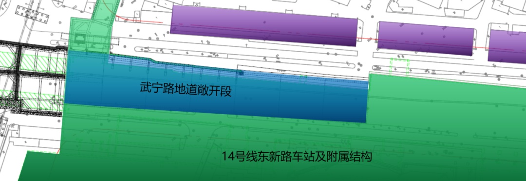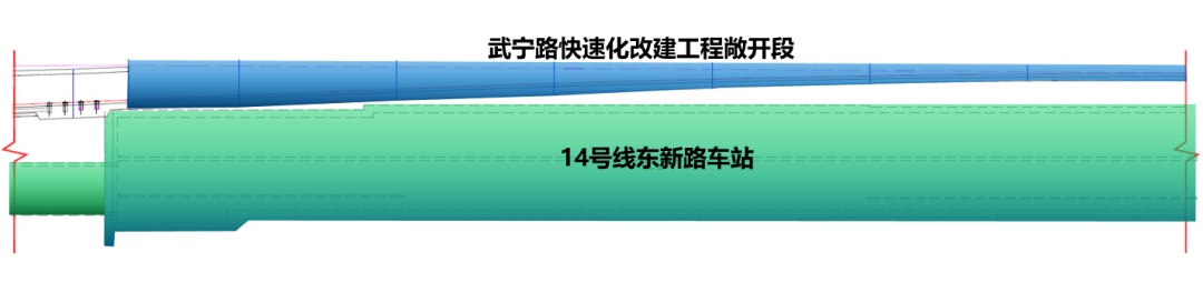 敞开段与14号线东新路车站示意图