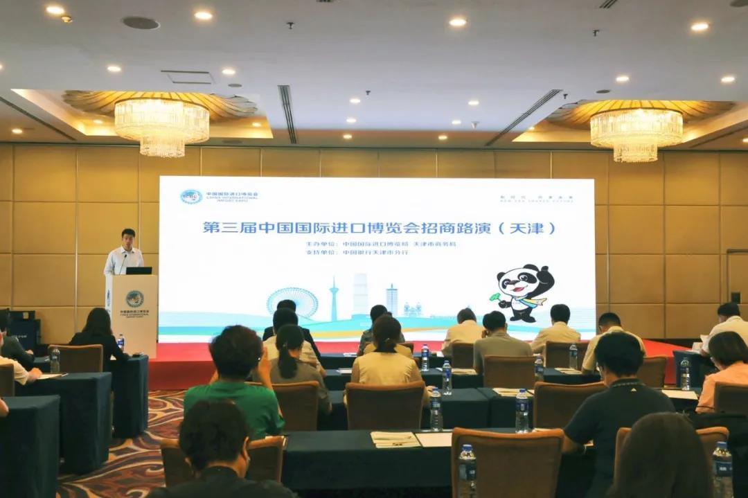 8月21日上午,中国国际进口博览局、天津市商务局在天津市共同举办第三届中国国际进口博览会(以下简称进博会)招商路演。本场路演主要面向第三届进博会食品及农产品展区、医疗器械及医药保健展区的采购商等专业观众。中国国际进口博览局副局长刘福学,天津市商务局副局长黄春艳,商务部驻天津特派员乌海宇,中国银行总行交易银行部副总经理潘志坚、天津市分行副行长张屹东等相关单位领导出席活动。