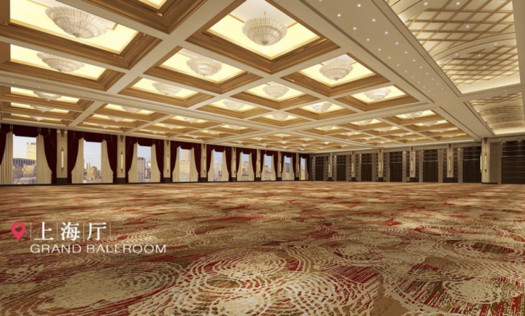 上海厅高达5米的饰花大门是会议中心之最,其内层采用钢结构,外包木料和瑞士铁梨木装饰板,每扇木门重达1吨,由于采用双轴结构,做工精密,传说中只需一根手指轻轻一推便可轻易开启。