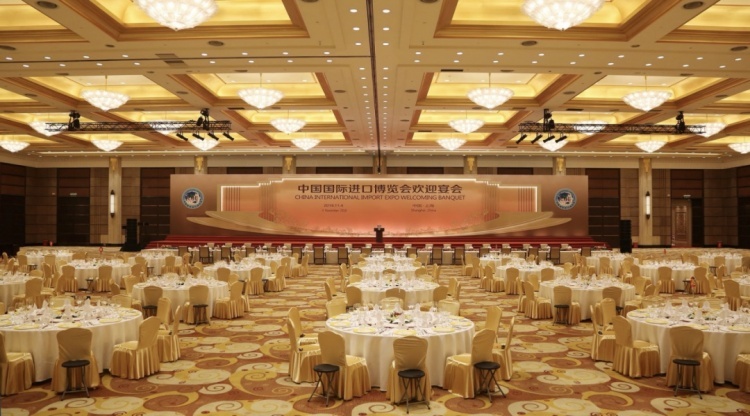 国际会议中心的上海厅面积4400平方米,宽80米,进深56米,高近10米。身处上海厅,发觉其最绝之处在于,这么一个偌大的会议厅竟没有一根柱子。