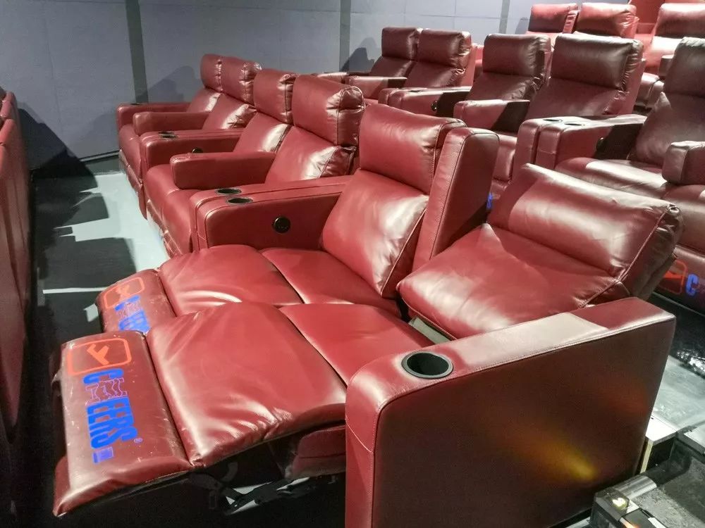 值得一提的是,激光院线厅也全部配备芝华仕头等舱系列沙发,皮质柔软,观众可以根据自己的需要调整沙发角度,怎么舒服怎么来。
