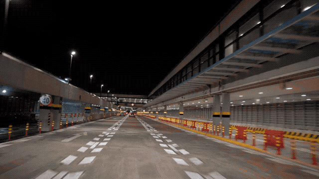 ▲车辆正在通过P1停车库大巴层新建的临时便道(视频经加速处理)